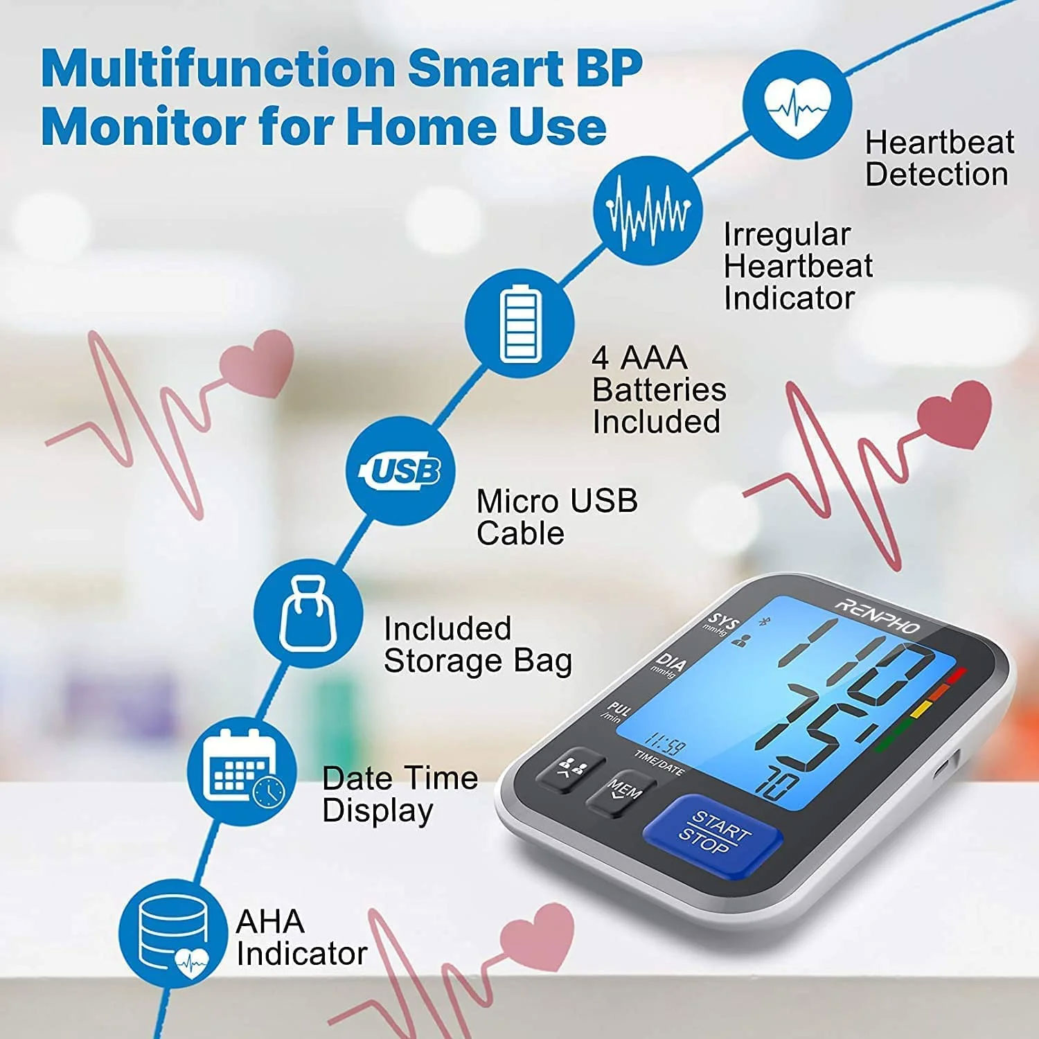 Renpho home blood pressure machine features new oscillometric technology that provides higher accuracy